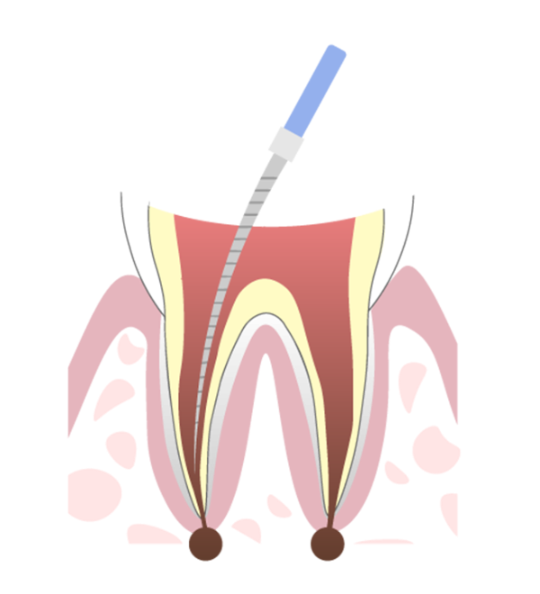 根管治療とは、死んでしまった歯の神経を取り除いたあと、歯の根をキレイに洗浄・殺菌し、歯を再び生かすための治療です。神経まで及んでしまった虫歯を放置しておくと、最終的には抜歯となってしまいます。こうした状況を阻止し、ご自身の歯を残すことができるのが根管治療です。